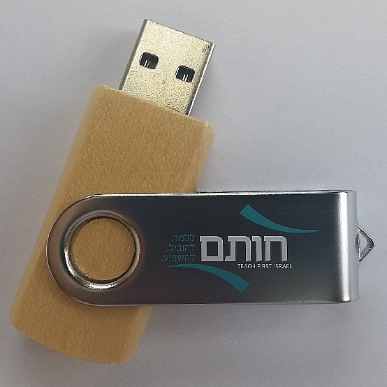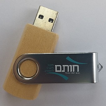 - זכרון נייד 8GB מתקפל מעץ ומתכת עם חיבור USB דק.