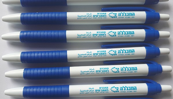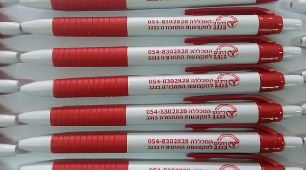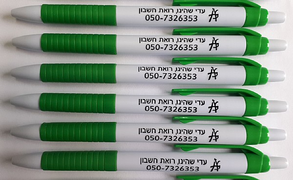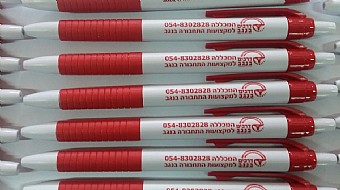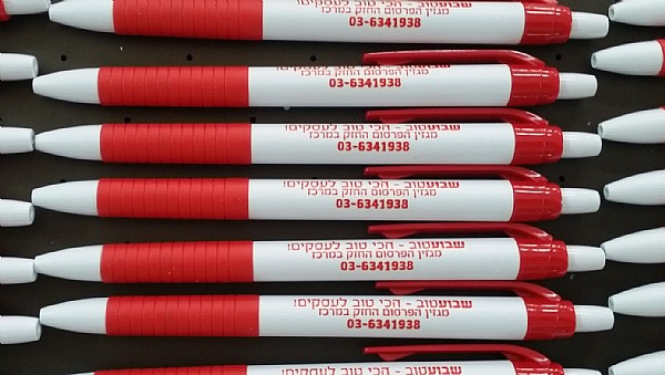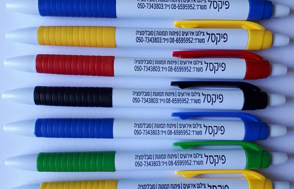 - עט כדורי עם קליפס ומנגנון לחיצה.
